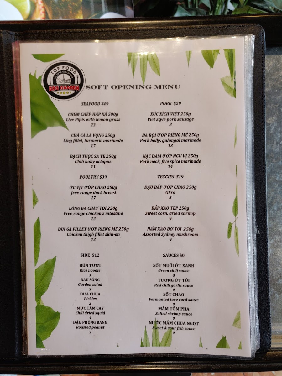 TopFood Canley Vale & Phở Sướng Menu